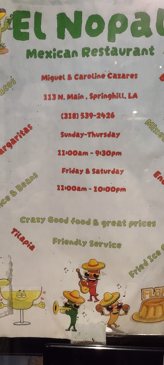 El Nopal Mexican Restaurant & Bar in Springhill, LA, offers an authentic taste of Mexico that keeps patrons coming back from near and far. Its menu showcases standout dishes like the celebrated 4 x 4, praised for its genuine flavors, and street tacos, described by many as near perfection. Complementing these are freshly made chips served with the best salsa in town, delivering a vibrant start to every meal. The bar's margaritas round out the experience with a refreshing, expertly crafted touch. While the menu provides a broad variety—from classic quesadillas to unique specialties—most dishes maintain a high standard that reflects true Mexican culinary traditions. The attentive service and quick delivery add to the overall dining satisfaction. El Nopal stands out as a must-visit for anyone craving flavorful, hearty Mexican cuisine with a welcoming atmosphere and genuine hospitality.